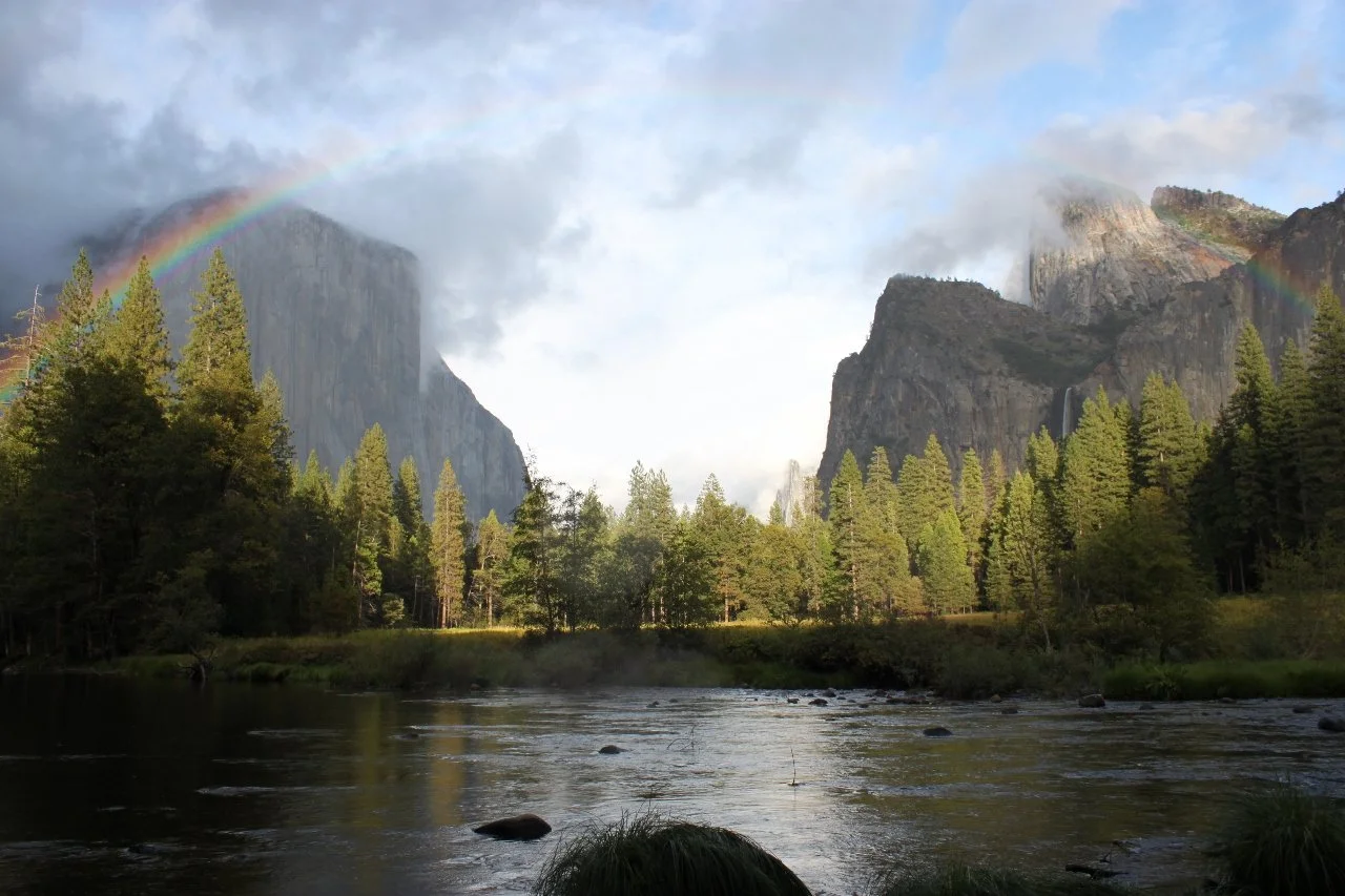 “Down through the middle of the Valley flows the crystal Merced, River of Mercy, peacefully quiet, reflecting lilies and trees and the onlooking rocks; things frail and fleeting and types of endurance meeting here and blending in countless forms, as if into this one mountain mansion Nature had gathered her choicest treasures, to draw her lovers into close and confiding communion with her.” - John Muir